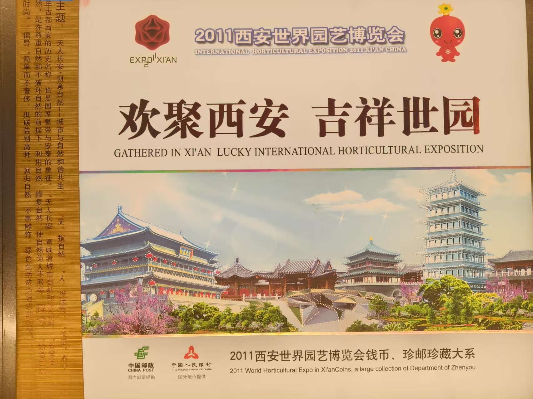2011年世界园艺博览会于2011年4月28日至10月22日在中国古都西安举行。为了纪念这一历史盛会,由我中心特别出品发行了2011西安世园会主题纪念藏品《欢聚西安吉祥世园》钱币、珍邮大系。本套藏品收录了国内外珍稀套票、联票、小型张、小全张等共计102枚,另外收录有主题首日封2套,彩色镀金纪念章2枚、高位浮雕彩色纪念银砖1块、历届举办国珍稀硬币12枚,精选参展国家和地区珍稀硬币12枚,每套藏品配有2011西安世界园艺博览会吉祥物“长安花”绒金摆件1尊,整套藏品设计清新明快,靓丽自然,收录的藏品丰富多彩,包装尊贵典雅,具有极高的纪念意义和收藏价值。限量编号发行2011套,是不可多得的收藏精品。