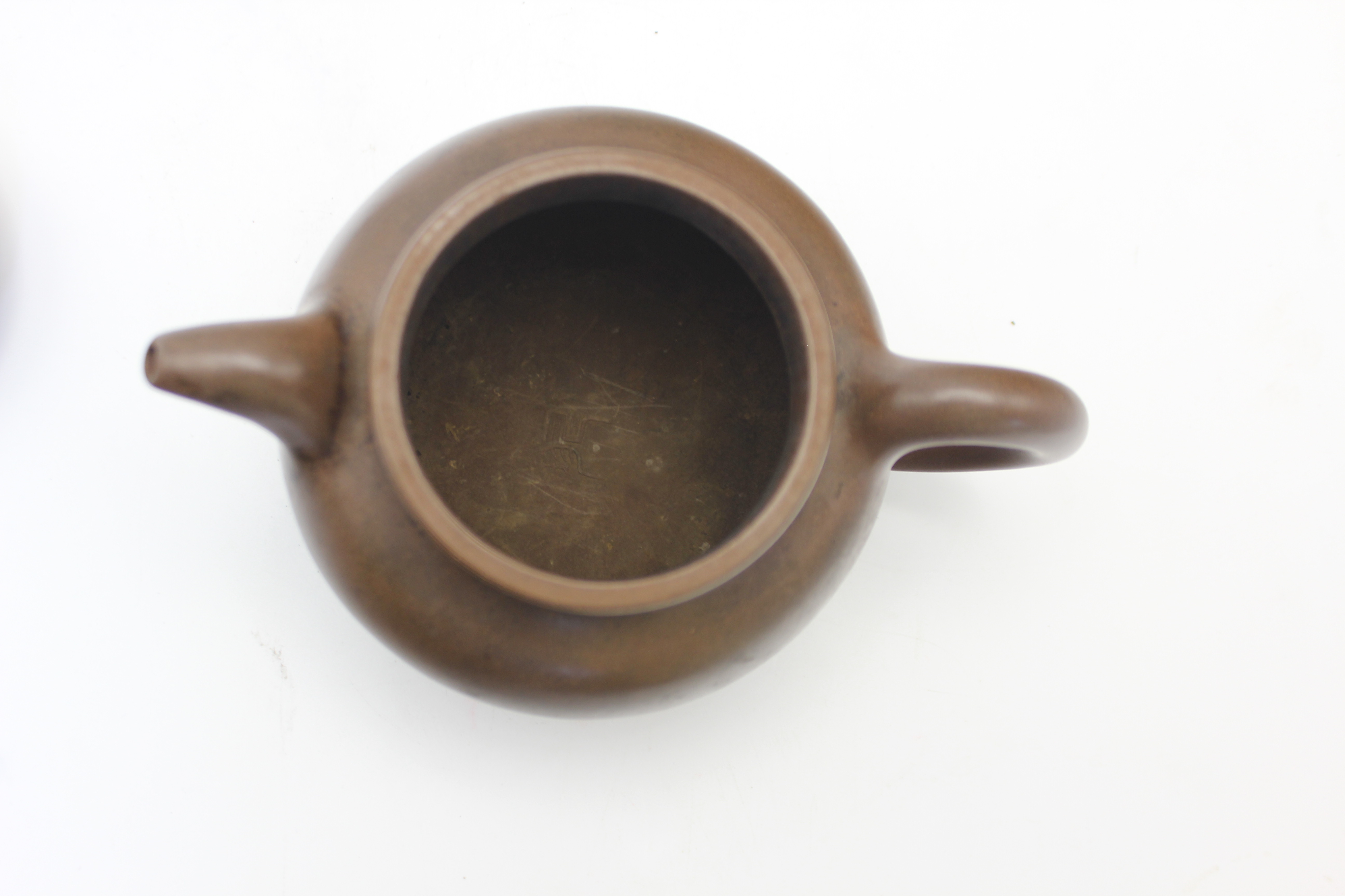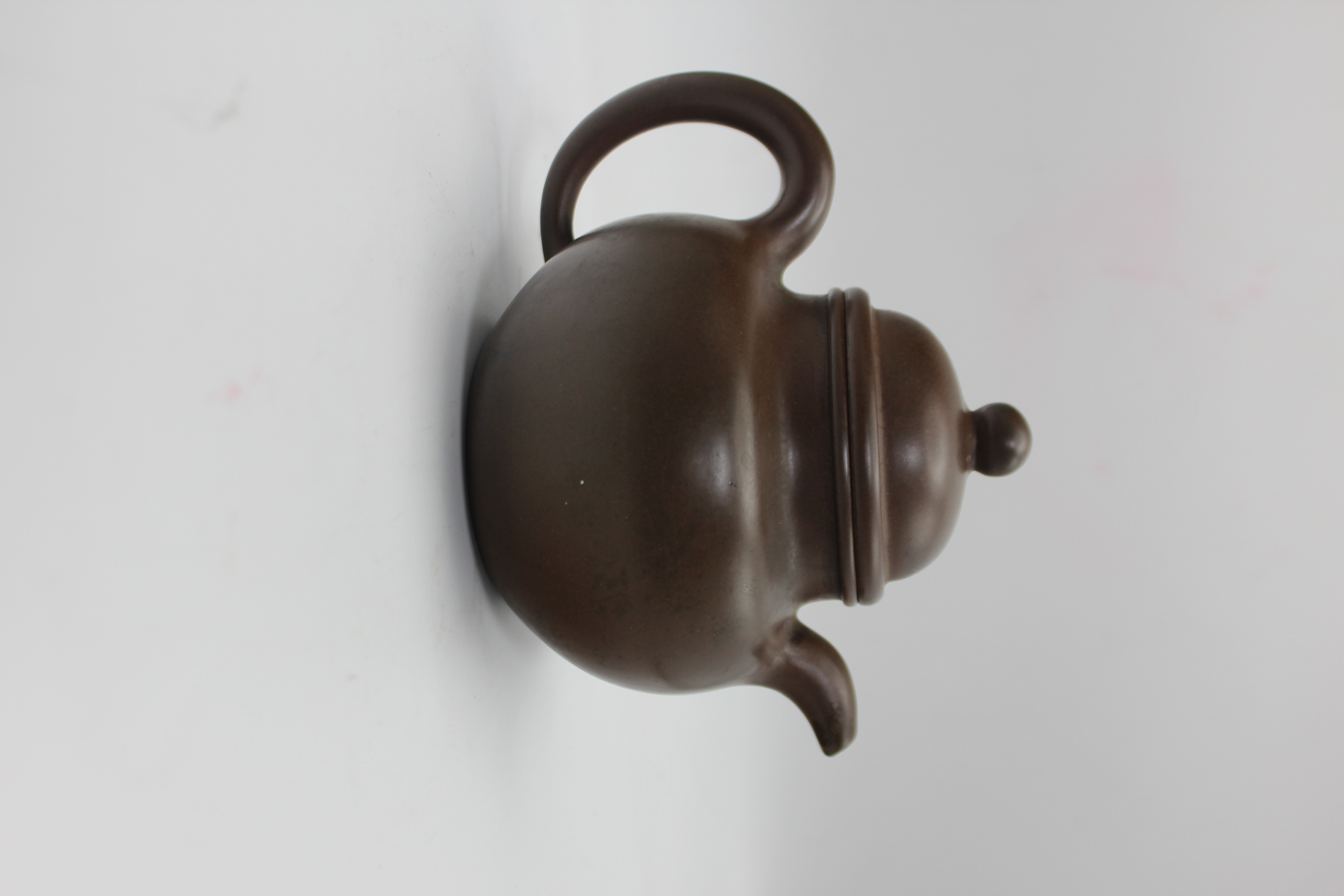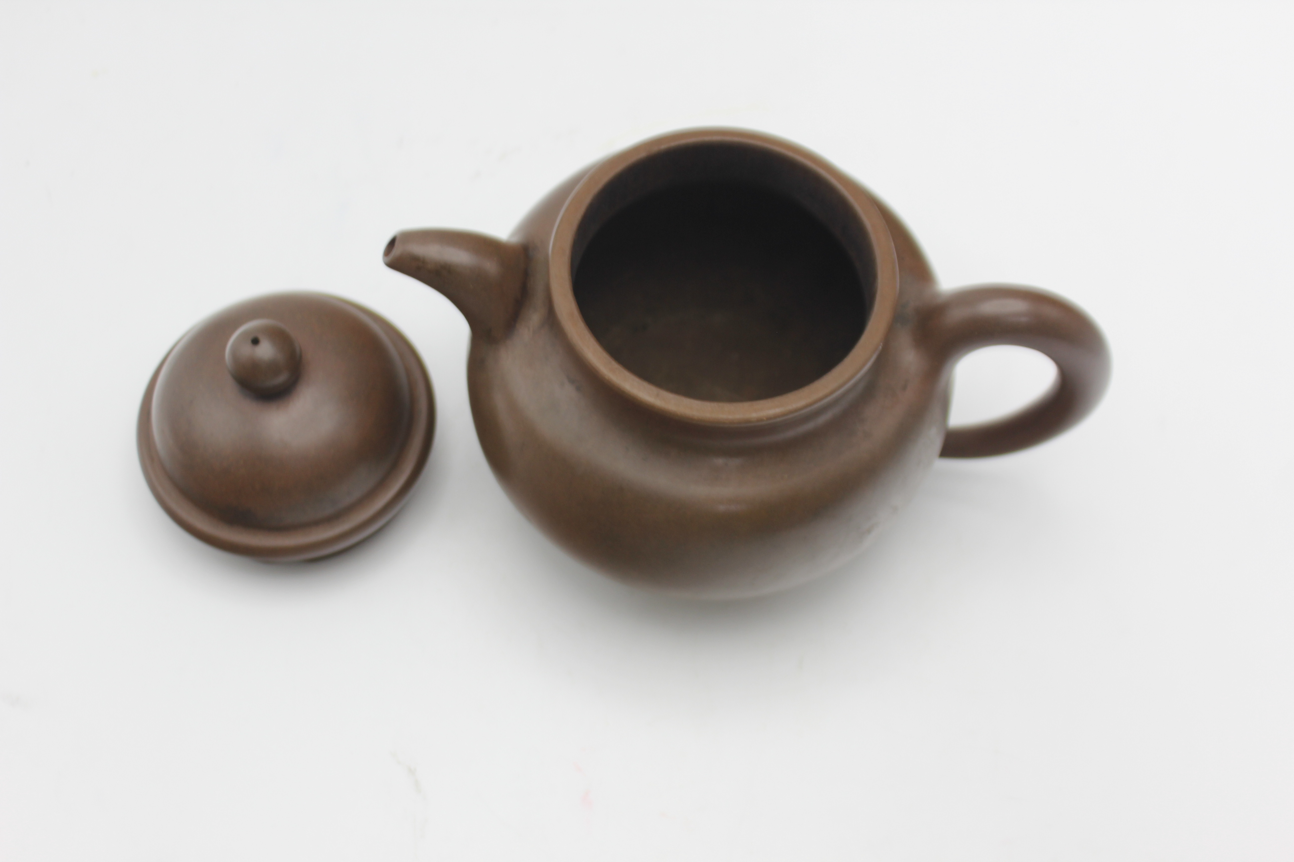 程寿珍是清末民初宜兴紫砂的代表性匠人,他出身紫砂世家,随养父邵友廷习得制壶基础,擅长光素器型,尤其掇球、仿古两款最为人称道。其制壶风格简约规整,不求繁复装饰,更重比例协调与实用性能。选泥多取自黄龙山传统矿料,经陈腐后成型,烧成后质地坚实,手感温润,体现了传统紫砂“泥料为本”的特点。从留存实物看,壶型延续了其一贯的简洁风格,线条流畅,接口处理精细。壶底钤印“八十二老人作此茗壶”,直观反映了制作时的年龄,也侧面说明他晚年仍坚持制壶,工艺手法未因年事已高而懈怠。1915年,程寿珍的作品参与巴拿马万国博览会巡展,其中掇球壶获金奖,这是中国紫砂早期在国际展会中的重要亮相,一定程度上提升了紫砂工艺的国际认知度。从市场角度看,程寿珍作品因工艺规范、存世量有限,且有明确历史背景,成为紫砂收藏领域的常见标的。近年拍卖市场中,其精品成交价多在数百万元级别,反映出市场对其工艺与历史价值的认可。