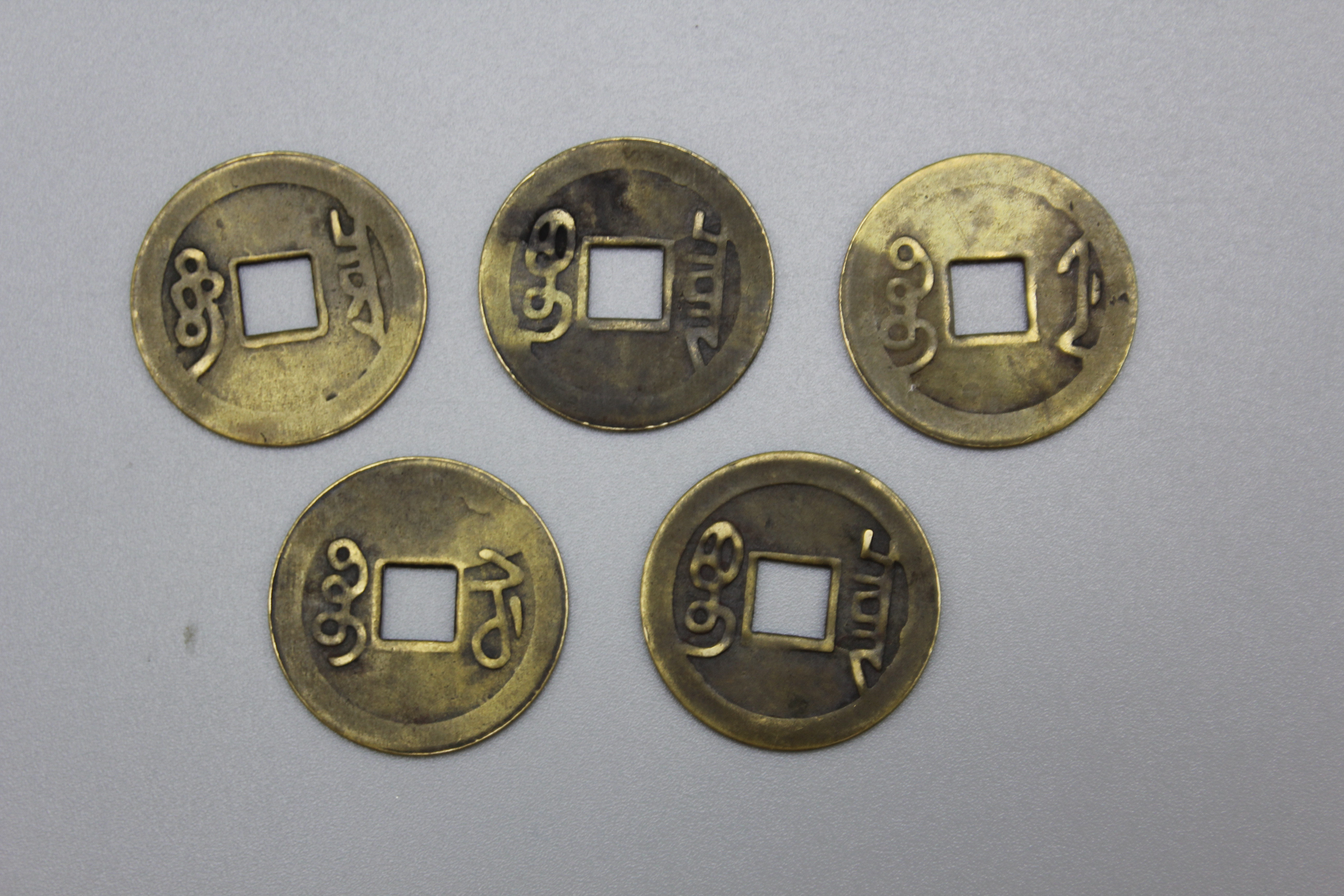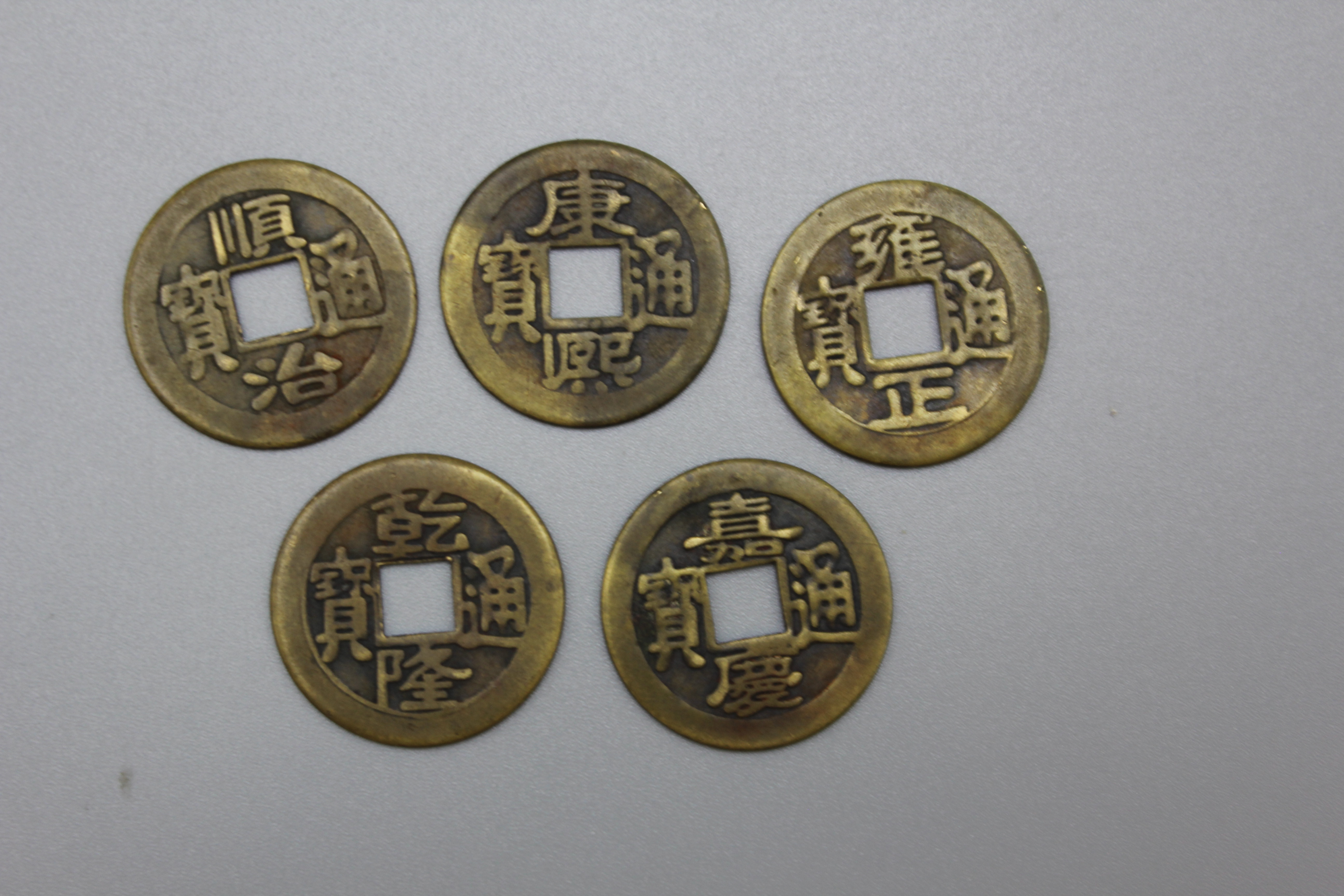 - 摆放与佩戴方法:一般从左到右按照顺治、康熙、雍正、乾隆、嘉庆的顺序摆放,有皇帝字号面向上,字脚向内。可挂在车内、家中玄关处、客厅等位置,或放在门槛、进出口的地毯下等,也可佩戴在身上,如用红线串起来挂在包上或随身挂带。