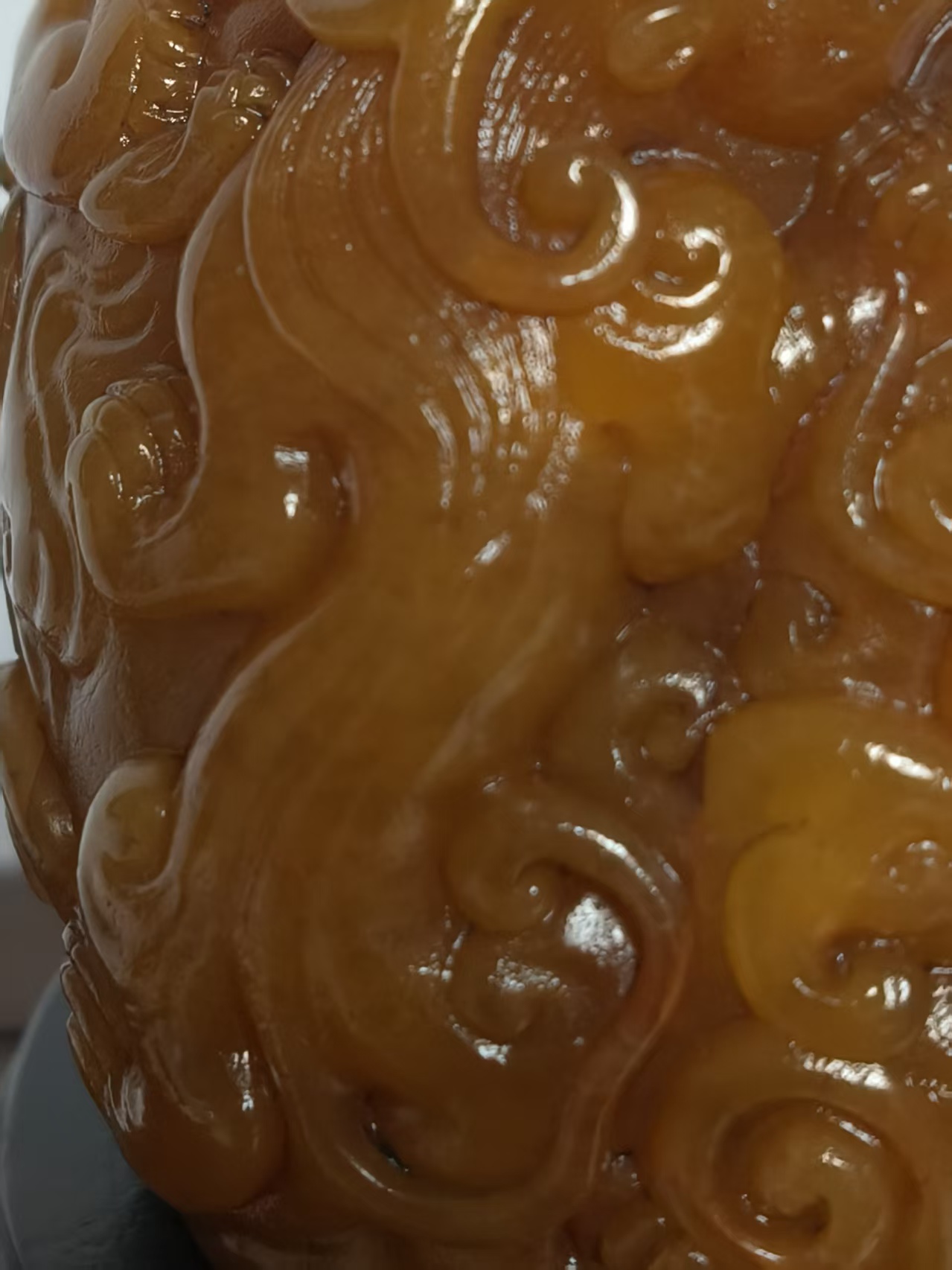 藏品选材自福建寿山乡坑头溪流域,为纯正田黄石。石质温润凝腻,色泽呈均匀的“鸡油黄”,肌理中密布细密的“萝卜丝纹”,并伴有天然形成的“红筋”,符合田黄“细、洁、温、润、凝、腻”六德标准。