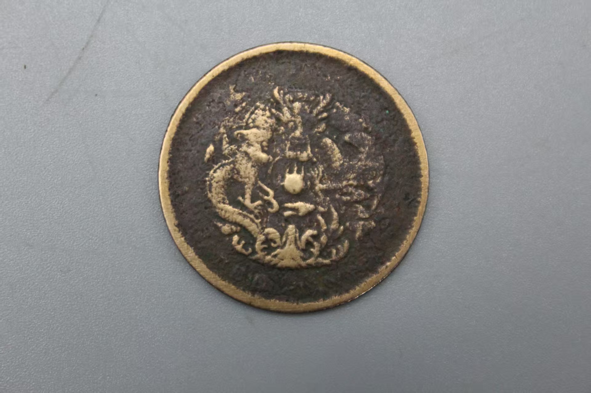 彼时湖广总督张之洞主政湖北,为缓解银钱荒、提振地方经济,引入英国伯明翰造币厂设备,所铸铜元分“当十”“当五”等面值,币面“光绪元宝”四字取馆阁体,背图为“坐龙”(龙身盘坐、火焰珠居中),是晚清龙纹币的经典样式之一。此币流通覆盖湘、鄂、豫等省,见证了清末地方财政与商贸的变迁。这枚包浆古旧的铜元,既是张之洞洋务运动的实物遗存,也是当下钱币市场里“接地气的历史信物”。