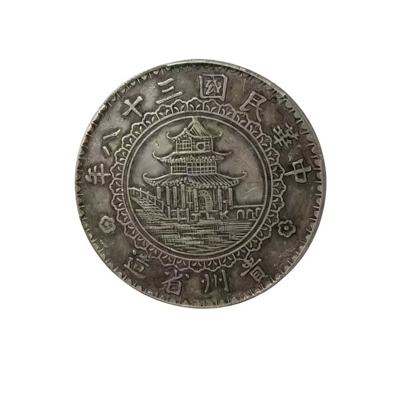 民国三十八年贵州银币是民国末期贵州地区铸造的金属货币,全称“中华民国三十八年贵州省造壹圆银币(竹子币)”,采用银质材质铸造,11月11日因战事停止铸造,银币正面图案为贵阳甲秀楼建筑,楼体暗藏"谷"字标记及"TLK"英文字母;背面饰以三枝金竹图案,依甲秀楼窗户形态可分为圆窗版与方窗版两种版别,该枚为方窗版,该系列银币铸造周期不足一月,实际流通量稀少,主要作为驻军薪饷发放导致存世分散。十分稀少,具有极高的收藏与投资价值