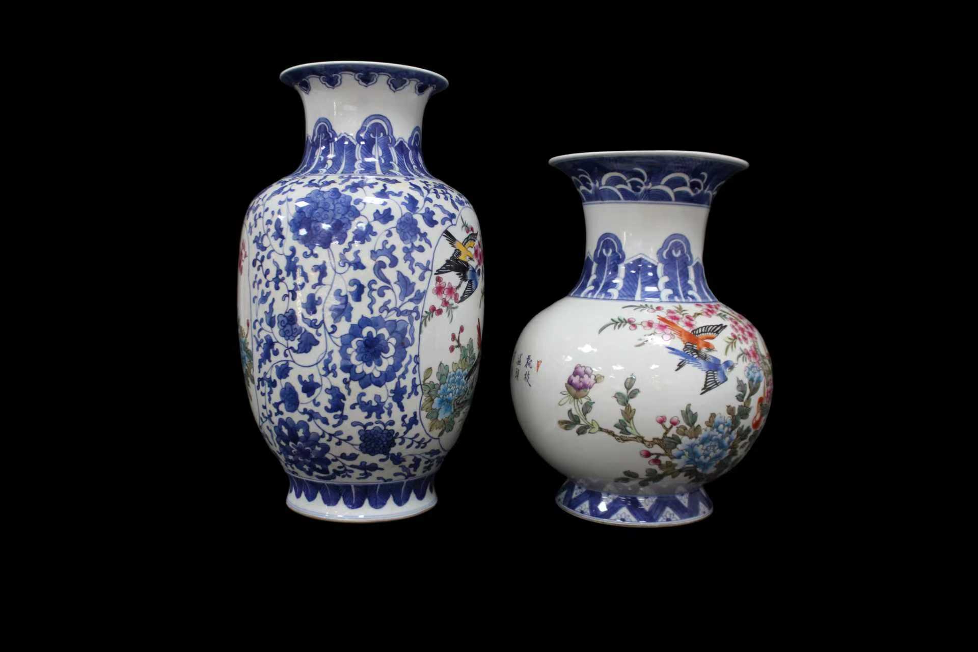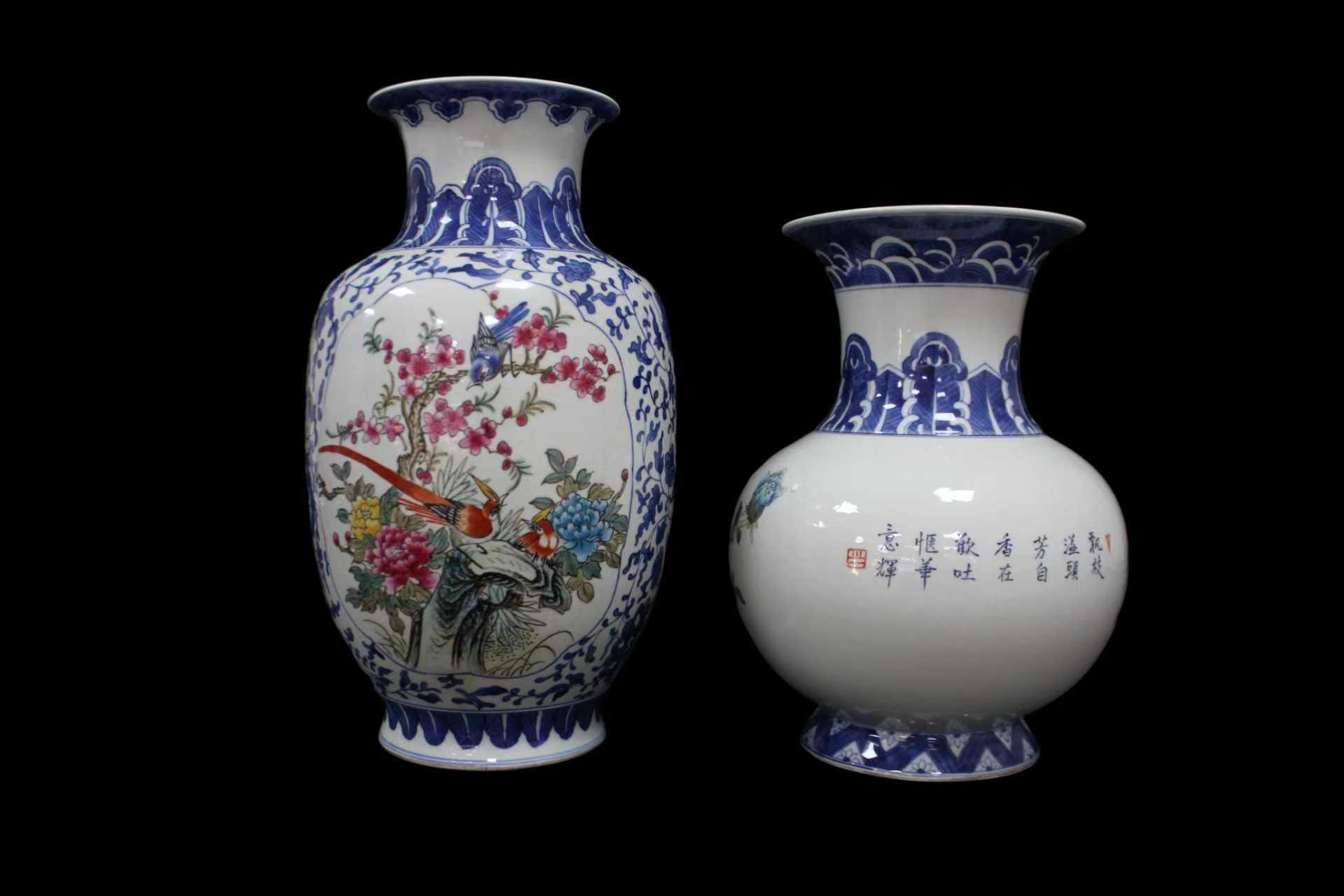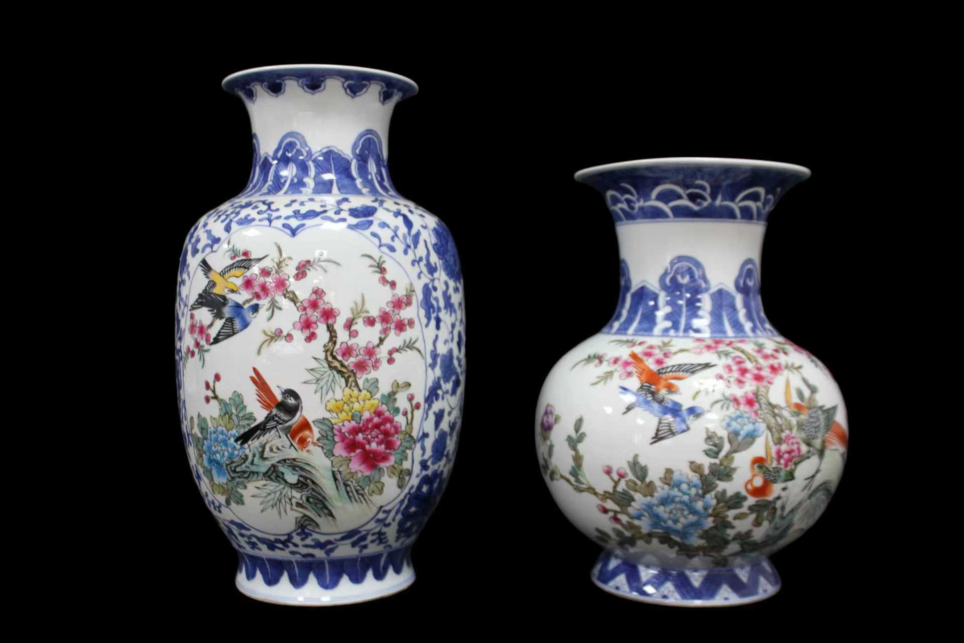 | 名称:清乾隆青花粉彩花鸟赏瓶一对 |