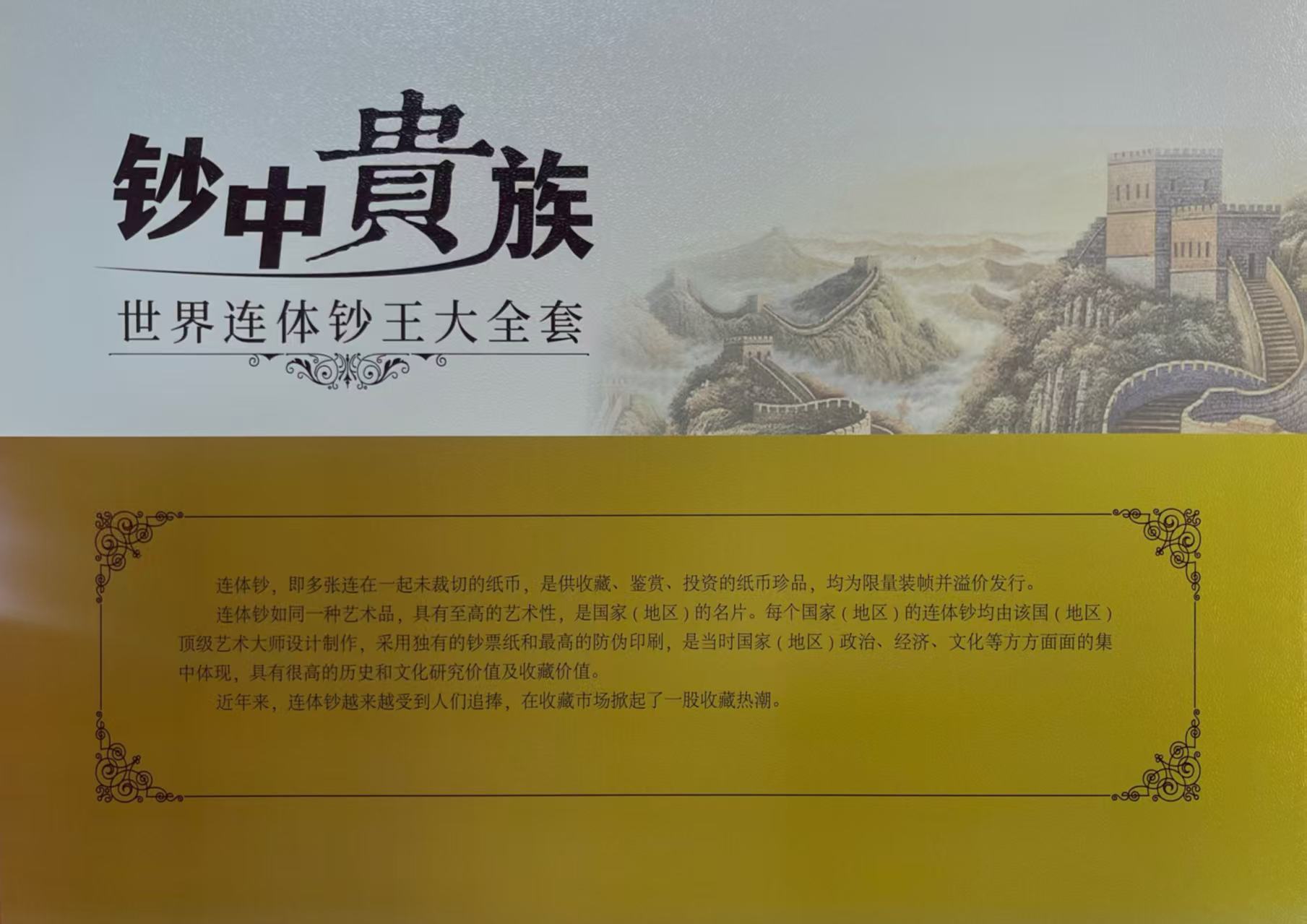 连体钞,即多张连在一起未裁切的纸币,是供收藏,鉴赏,投资的纸币珍品,均为限量装帧并溢价发行。